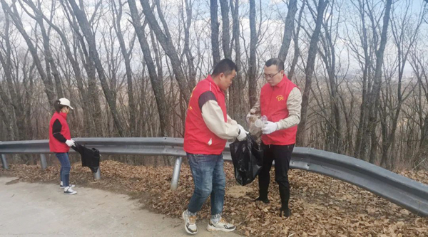 大家自備手套、水靴、剪刀、袋子、皮繩等清掃工具,從石青山的山腳下開始,對環(huán)山路兩側的垃圾進行全面清理、裝運。有的鉆入樹林,撿拾白色垃圾;有的摘除破損條幅,更換新貌;有的收堆、撐袋,將垃圾裝車運走。醒目的條幅標語,飄揚的志愿服務隊隊旗,鮮紅的志愿者身影,忙碌的勞動場面,構成了一幅五彩斑斕的畫卷。