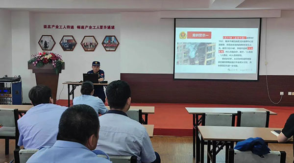 修泰鯤教官結(jié)合全國(guó)近期火災(zāi)發(fā)生案例,通過(guò)圖文并茂和視頻培訓(xùn)方式,向員工們講解消防安全“四個(gè)能力”、不同單位、不同部位應(yīng)該配置哪種消防器材,不同消防器材的區(qū)別、使用方法、維護(hù)保養(yǎng)、注意事項(xiàng);火場(chǎng)中的疏散、逃生、自救技巧、濃煙危害及防范措施;如何借助逃生工具;日常生活中的防火知識(shí)、應(yīng)急處理等知識(shí)。